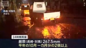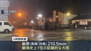 長崎県対馬市の厳原ではわずか6時間で200ミリを超える雨が降り、