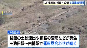 路盤の土砂の流出や流木による線路の変形などが発生し、