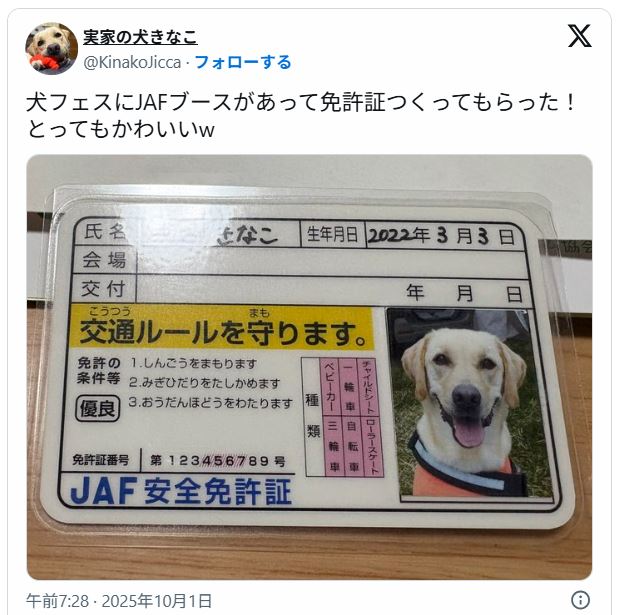 「犬フェスのJAFブースで愛犬の免許証を作ってもらった」