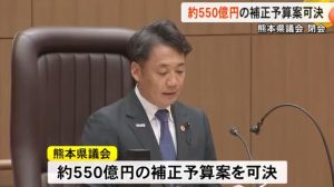 ◆7日閉会した熊本県議会の9月定例会では、約550億円の