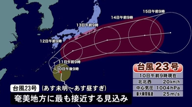 ◆日本の南の海上にある台風23号は、11日未明から12日にかけて