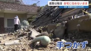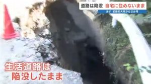 生活道路は大きく陥没したままで、通行できない状態が続く。