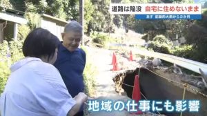 8月の大雨で土砂崩れが多発し、生活道路は通れるように応急措置が
