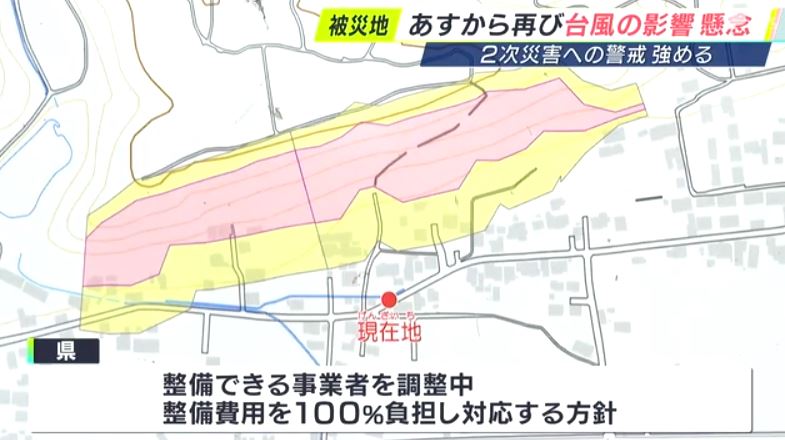 被害があった森林は土砂災害警戒区域に指定されていて、