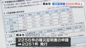 ◆熊本市によると14日までに2256件の罹災証明書の申請があり、