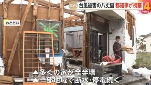 八丈島は台風22号と23号により多くの家屋が全半壊したほか、