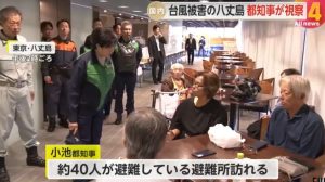 ◆15日午後2時ごろ、八丈島の被災現場に入った小池都知事は、