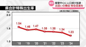 2024年、石川県内では、女性一人が生む子どもの平均数を示す