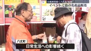 八丈町はいまも多くの建物が倒壊したまま一部で断水も続いている。