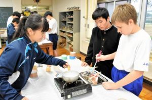 川口中学校の生徒(左)に