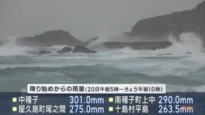 気象台によると、20日の降り始めからの雨量が中種子町で300ミリを