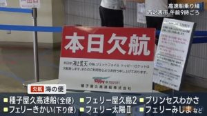 三島村の「フェリーみしま」などが欠航。