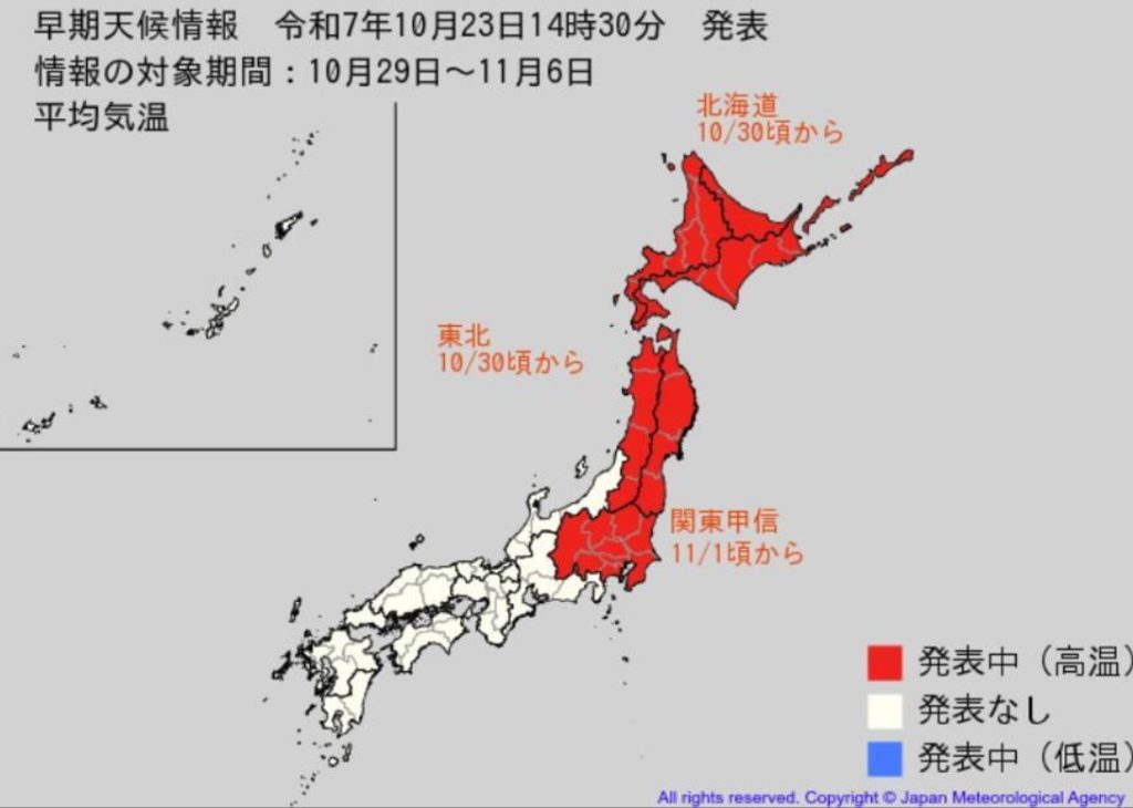 ◆気象庁は10月23日、「高温に関する早期天候情報」を発表した。