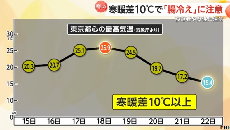 10度以上の寒暖差で胃腸の調子が悪くなるという“腸冷え”。