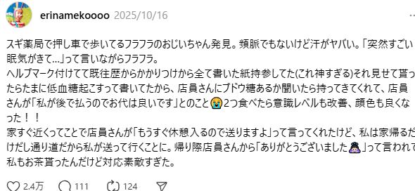 「薬局で体調を崩したおじいさんを見かけたときの“勇気ある行動”」