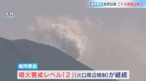 噴火警戒レベルは火口周辺への立ち入り規制を示す「2」が継続。