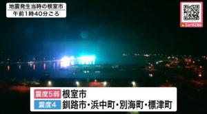 ◆25日午前1時40分ごろ、根室半島沖を震源にマグニチュード5.8の