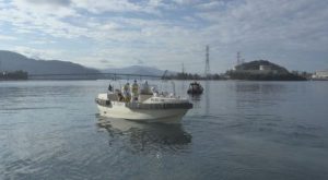 海上保安庁の搭載艇で避難