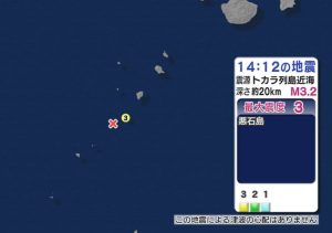 【トカラ列島近海で震度3】