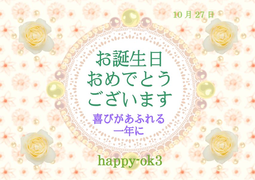 今日 10月27日がお誕生日の方、おめでとうございます。