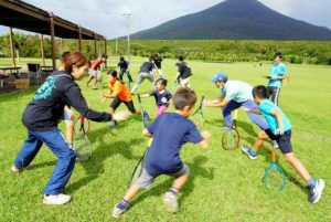 テニスチームを主宰している八丈高校職員の中込祥高さん(52)が