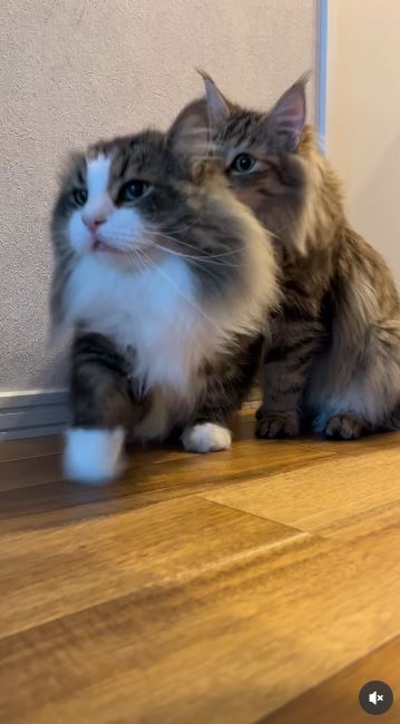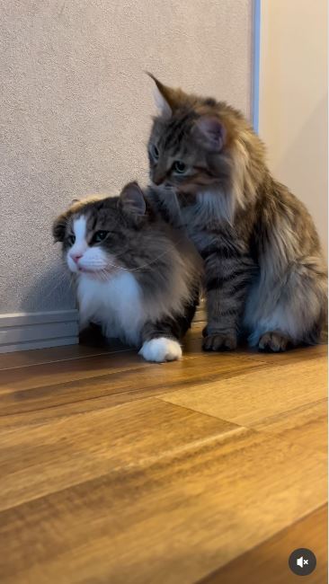 面倒見の良い猫ちゃんの光景が微笑ましいと話題となっているのは、