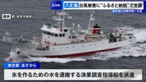 氷を作るための水を運搬するため、漁業の調査などで使う船を派遣する。