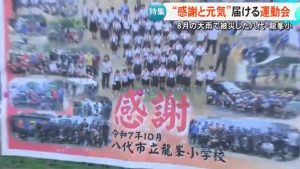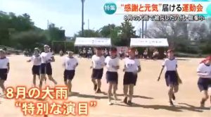 ◆8月の記録的な大雨で、龍峯小学校の校舎やグラウンドには、