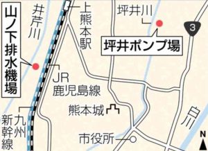 坪井ポンプ場(中央区)は、浸水による電気設備の故障が原因とした。