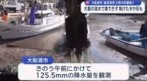 1日午前にかけて県内を襲った暴風雨で大船渡市では125.5ミリの