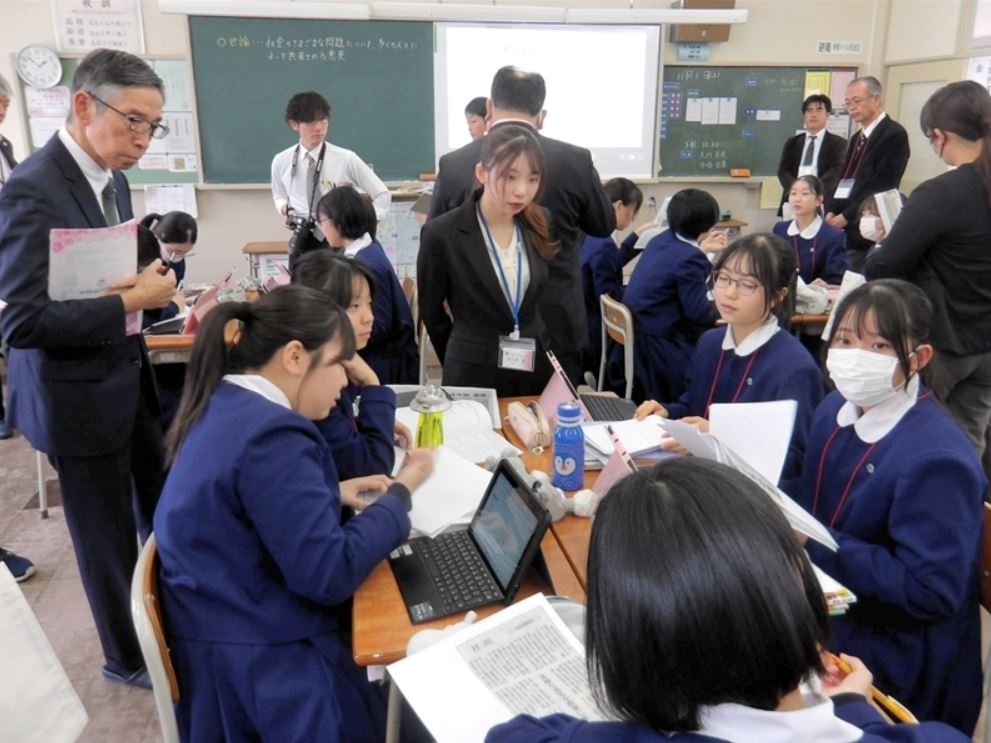 その後、公開授業後に情報・意見交換、高城友治校長らがあいさつし、
