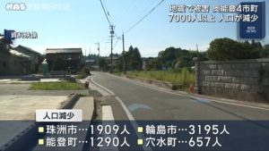 自治体ごとに減少の内訳をみると、 珠洲市では1909人、輪島市では3195人、
