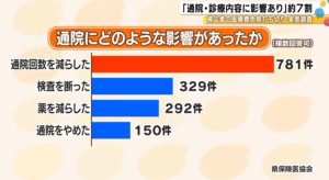 回答では通院をやめたことや通院回数を減らしたなどと答えた人が多く、