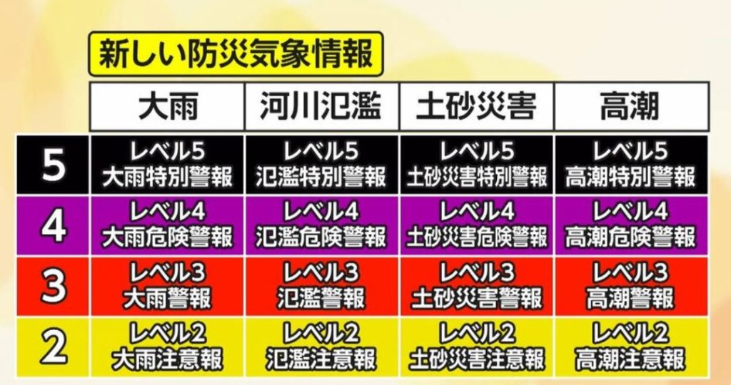 防災気象情報について、新たに5段階にレベル分けで発表し、