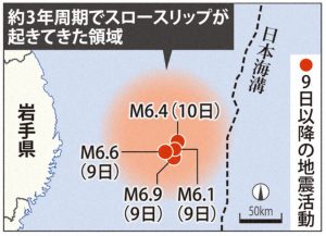 ◆今月9日に三陸沖で発生し、マグニチュード(M)6・9の