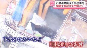 下水道管が破損したため、周辺の住民は、下水の悪臭に