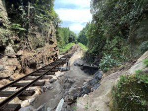 大雨の影響で線路の土台が崩れた