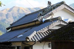 阿蘇地域では民家のブロック塀や瓦の崩落が発生。