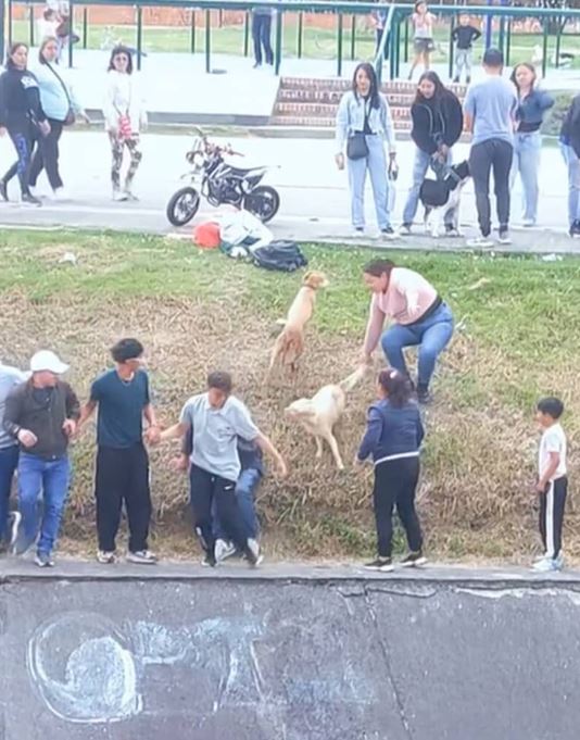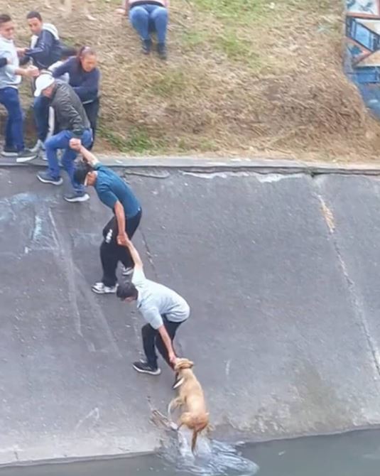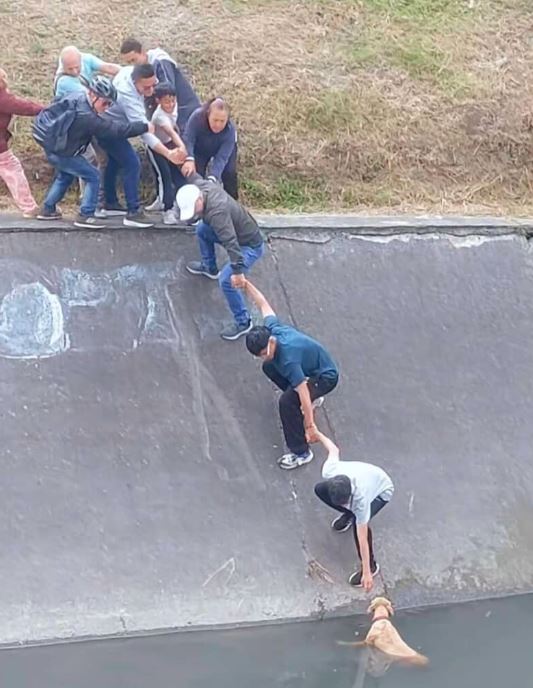 “人間の鎖”をつくって犬の救助に乗り出した。
