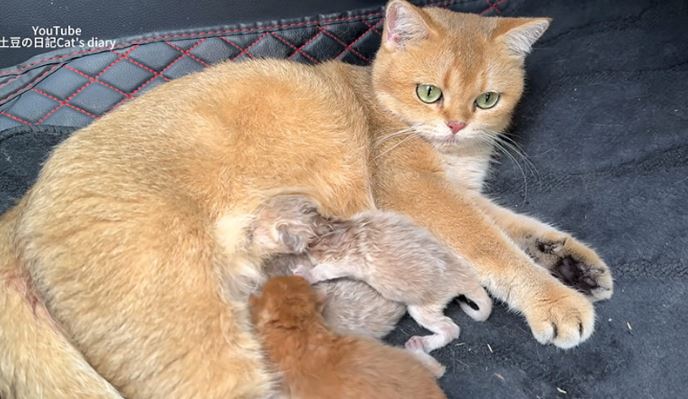ある日、母猫が子猫を咥えて車に飛び乗ってきた!
