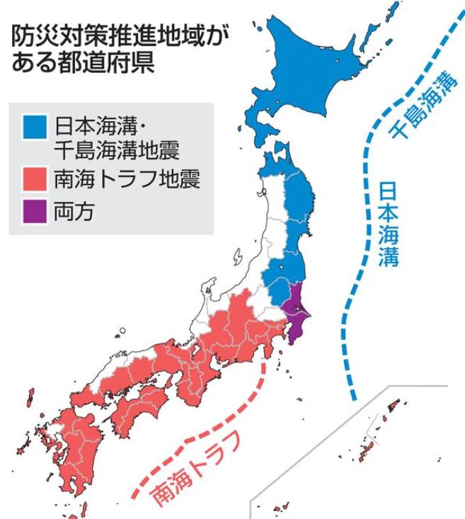 日本海溝・千島海溝地震と南海トラフ巨大地震の被害が