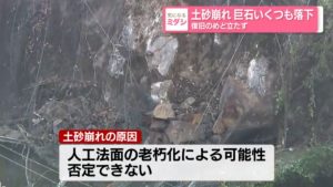 土砂崩れの原因はまだわかっていないが、人工の法面の