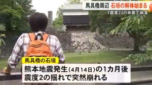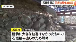 【熊本城馬具櫓周辺で石垣の解体工事】