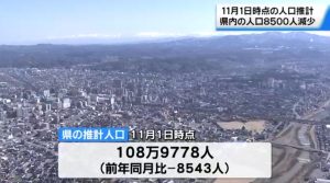 108万9778人で、去年の11月1日と比べると約8500人減少。