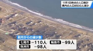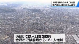 ◆石川県が発表した11月1日時点の人口推計は、県の人口は