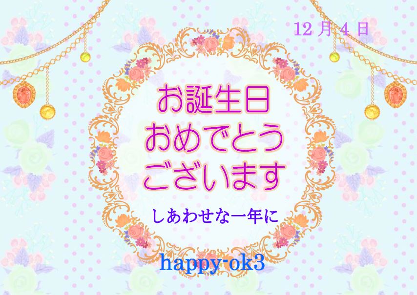 今日 12月4日がお誕生日の方、おめでとうございます。