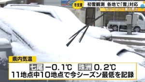 ◆石川県七尾で氷点下0.1℃、珠洲で0.2℃など11ある