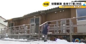 仮設住宅では、朝から除雪作業に追われる人の姿もあった。