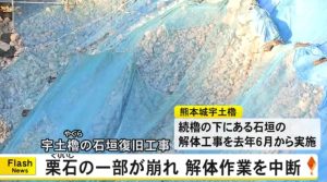 熊本城宇土櫓では、続櫓の下にある石垣の解体工事が、