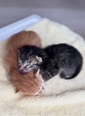 ぽんずちゃんは、生まれて2、3日頃にキジトラのごまくんと